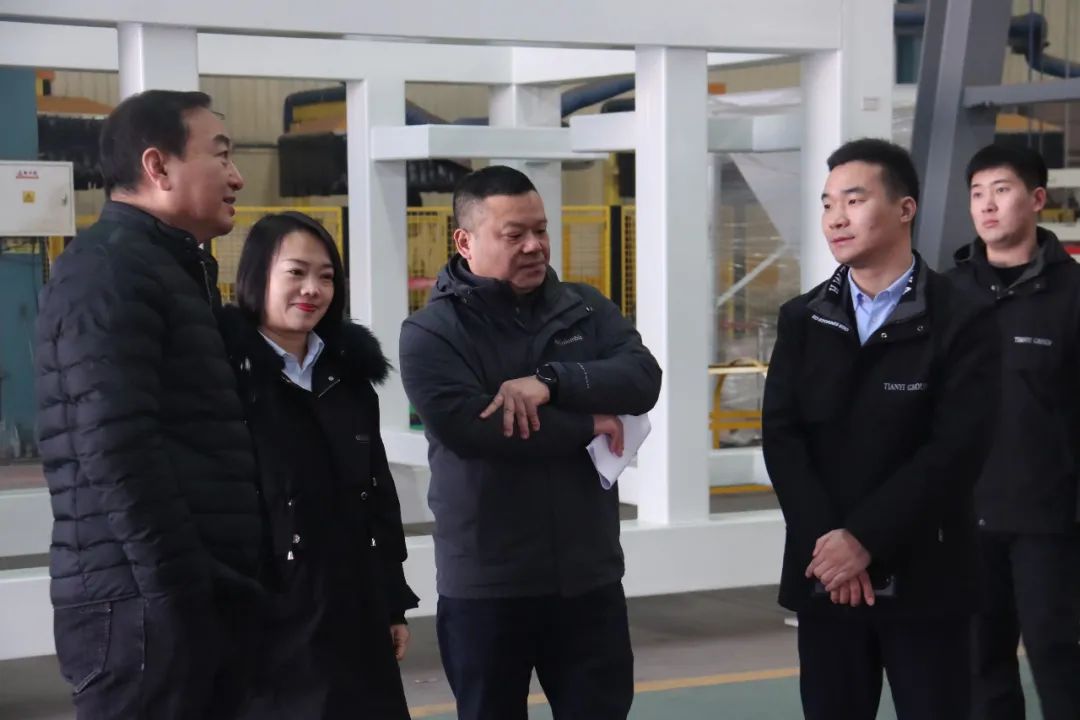 中國建筑材料工業(yè)規(guī)劃研究院院長特別助理王新捷、中國絕熱節(jié)能材料一體板分會秘書長王林調(diào)研天意機械