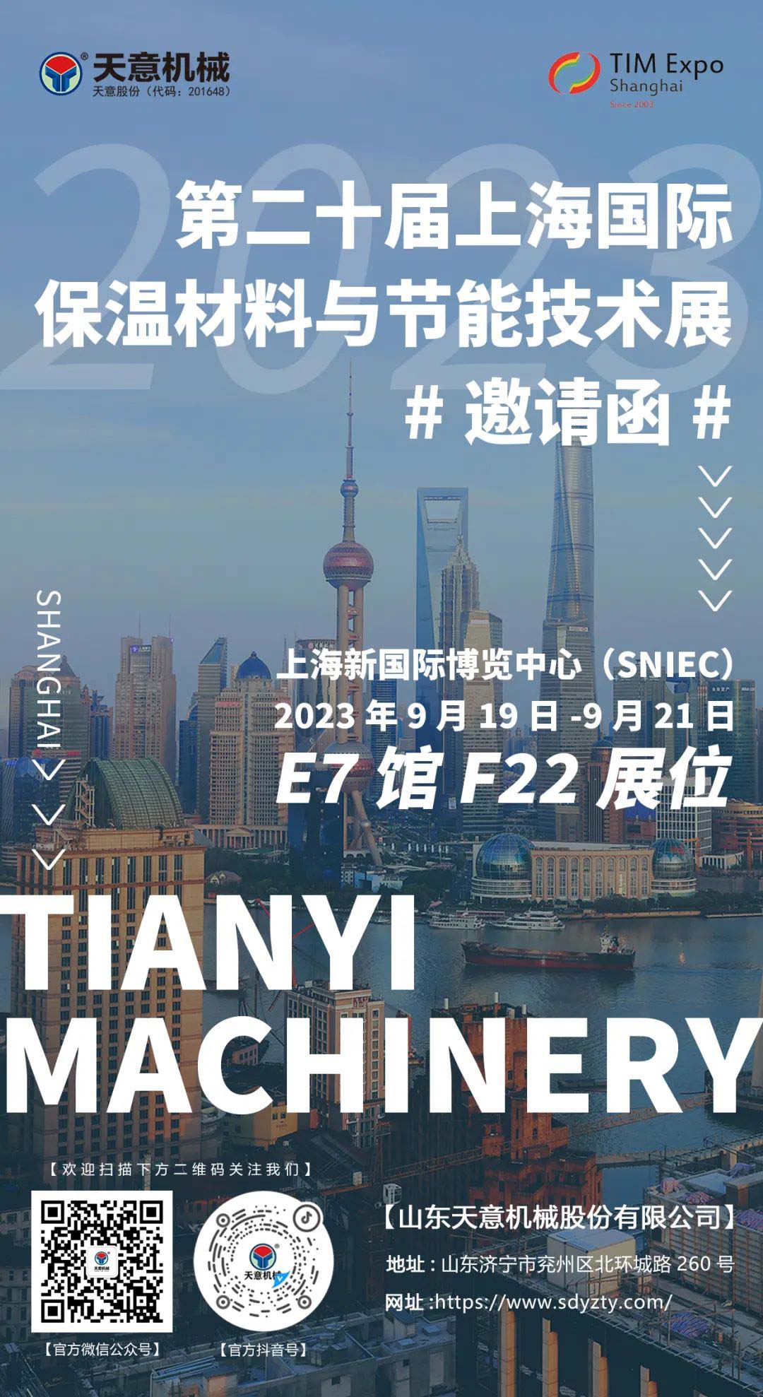 展會(huì)預(yù)告丨天意機(jī)械即將亮相第二十屆上海國際保溫材料與節(jié)能技術(shù)展