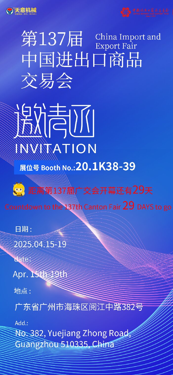 天意機械蓄勢待發(fā)!第137屆廣交會誠邀全球伙伴共赴智造未來