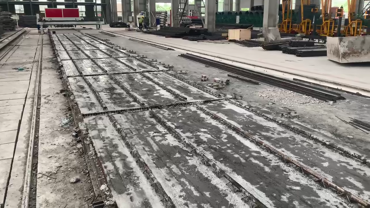 預(yù)應(yīng)力長(zhǎng)線臺(tái)構(gòu)件生產(chǎn)線,每一道工序都經(jīng)過精心設(shè)計(jì)和優(yōu)化。經(jīng)過精密計(jì)算的預(yù)應(yīng)力鋼筋,被精確地放置在長(zhǎng)線臺(tái)上,每一根鋼筋的位置和角度都經(jīng)過嚴(yán)格的控制,以確保構(gòu)件的受力均衡和穩(wěn)定性。