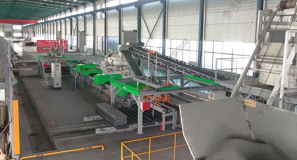 擠壓墻板生產(chǎn)線結(jié)構(gòu)緊湊,自動化程度高,設(shè)備主機固定,墻板成型時物料受擠壓和振動同時作用,連續(xù)自動擠壓振搗成型,保證墻板具有良好的密實性和外形尺寸,成型后進(jìn)行初凝養(yǎng)護(hù)。板坯移動方便,場地使用靈活、利用效率高。成型工段推料擠壓螺旋變頻調(diào)速,由中央控制器調(diào)整控制灰渣板成型的密實程度,實現(xiàn)灰渣板的連續(xù)自動流水線生產(chǎn)。由于采用低水灰比的干硬性混合料擠壓成型,可得到強度和密實度較高的空心墻板。自動化連續(xù)生產(chǎn),效率高,質(zhì)量一致性高,保障了墻板品質(zhì)。廣泛用于框架結(jié)構(gòu)和鋼結(jié)構(gòu)建筑物。